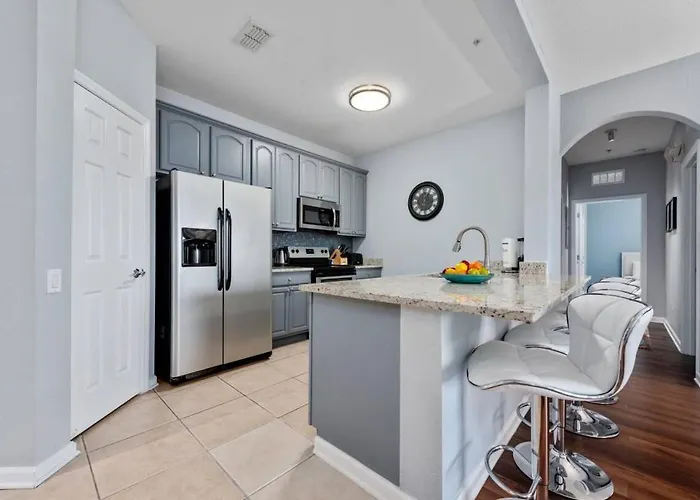 O apartamento Apto 3Q Vista Cay C/ Varanda E Piscina Aquecida possui cozinha totalmente equipada equipada com forno e máquina de lavar loiça. O aeroporto em Orlando Internacional está localizado a 20 km, enquanto a estação de autocarro Destination Parkway and Universal Boulevard fica a um curto caminho deste apartamento.